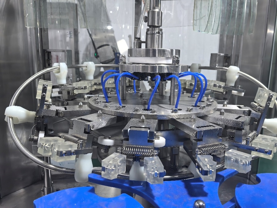 Tecnologia de Lavagem Rotativa Comprovada: Apresenta um sistema de mesa rotativa indexadora confiável que garante um posicionamento preciso das garrafas e uma lavagem consistente e completa durante todo o ciclo.